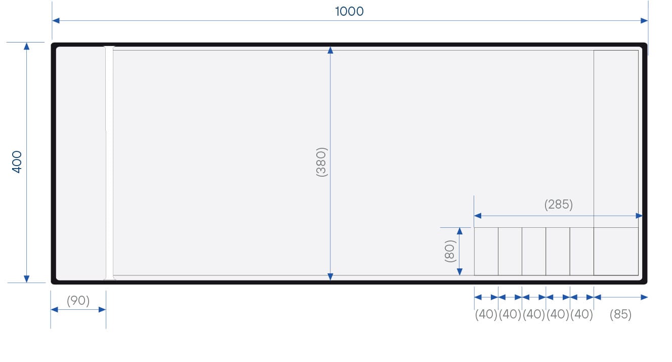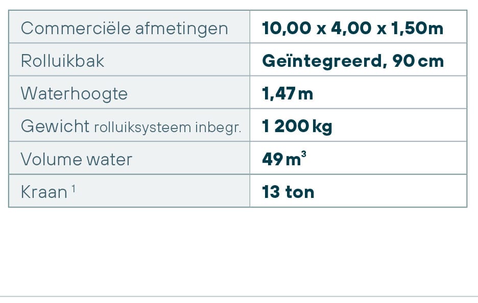 Rolluikbak is gescheiden van het zwemgedeelte door een tussenwand