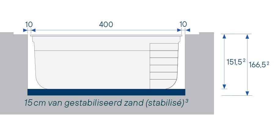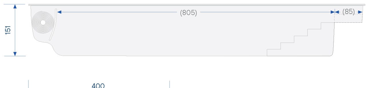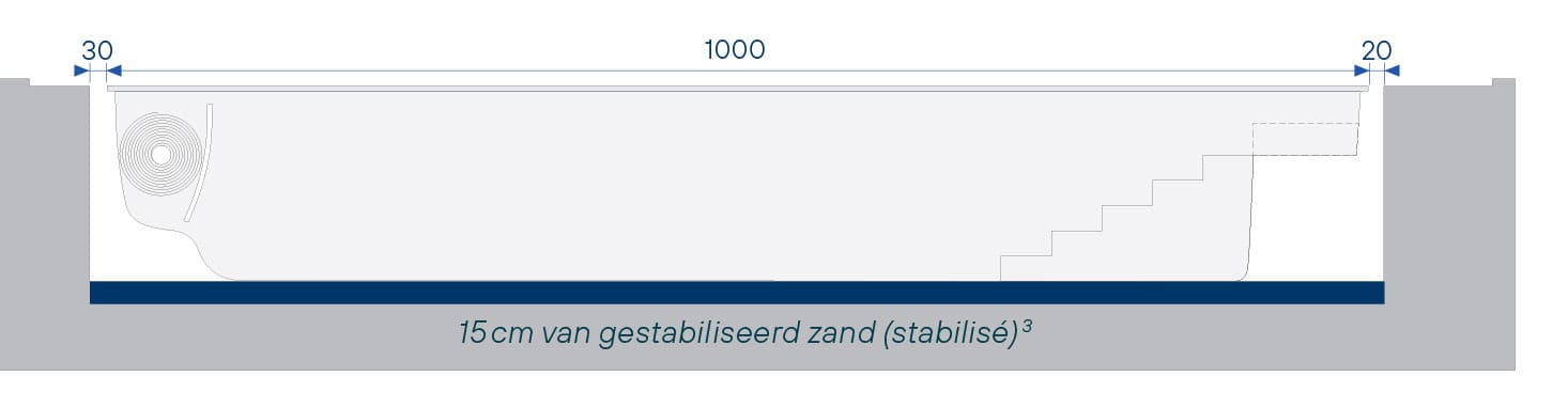 Dezelfde kenmerken als La Plage 9, La Plage 11 en La Plage 12, met een rechte trap waarvan de eerste trede een onderwaterzitbank vormt.
