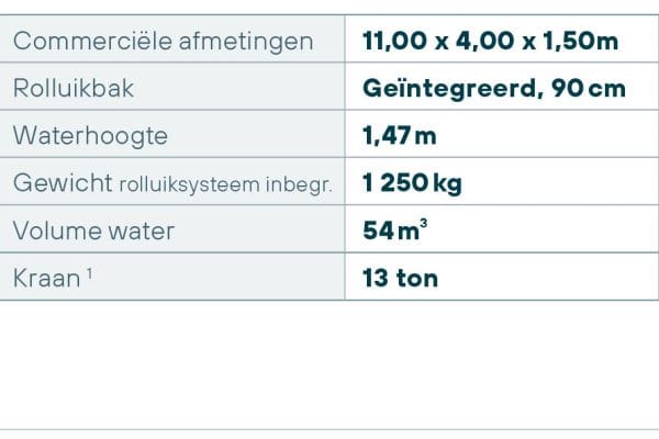 Rolluikbak is gescheiden van het zwemgedeelte door een tussenwand