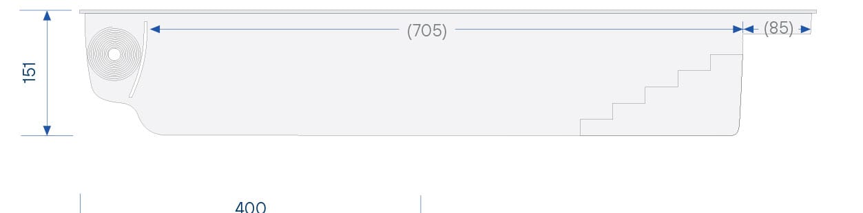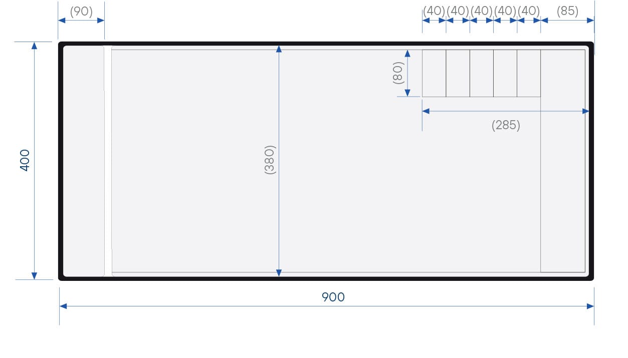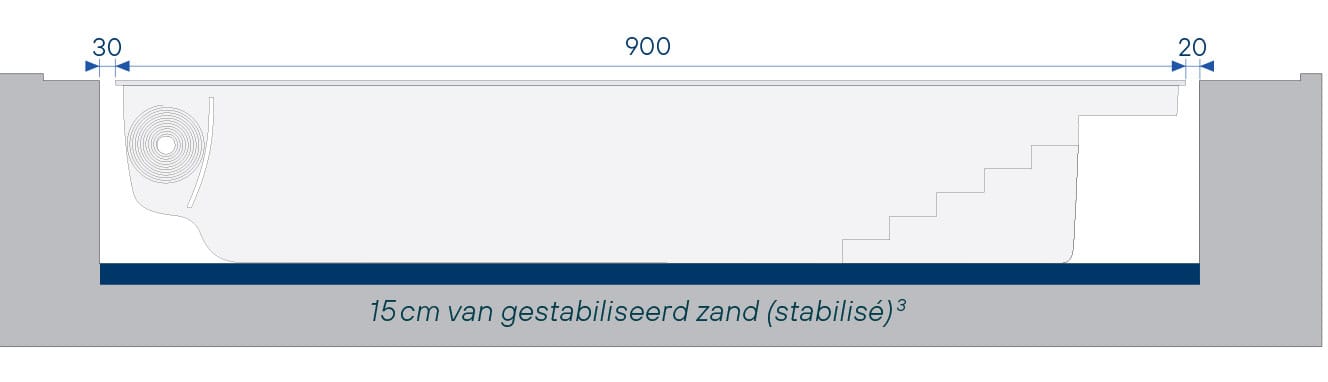 Rolluikbak is gescheiden van het zwemgedeelte door een tussenwand