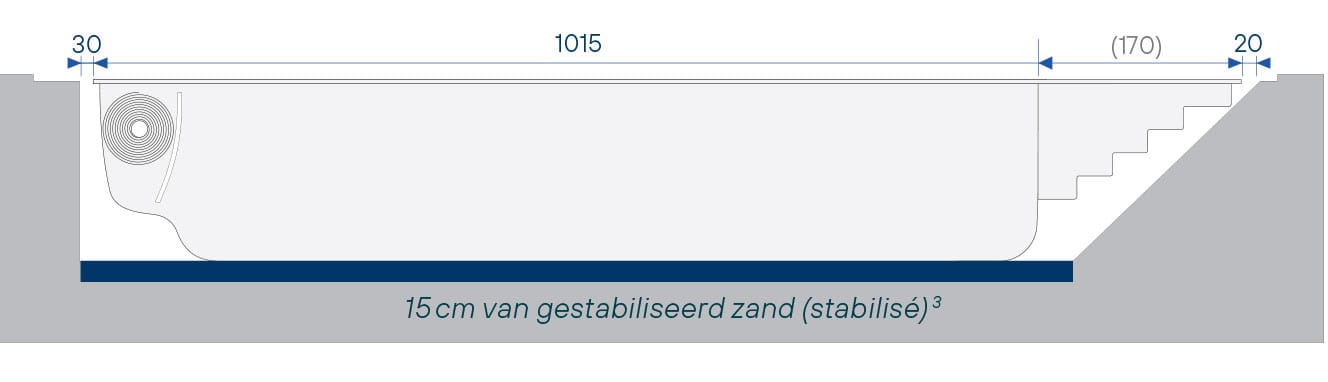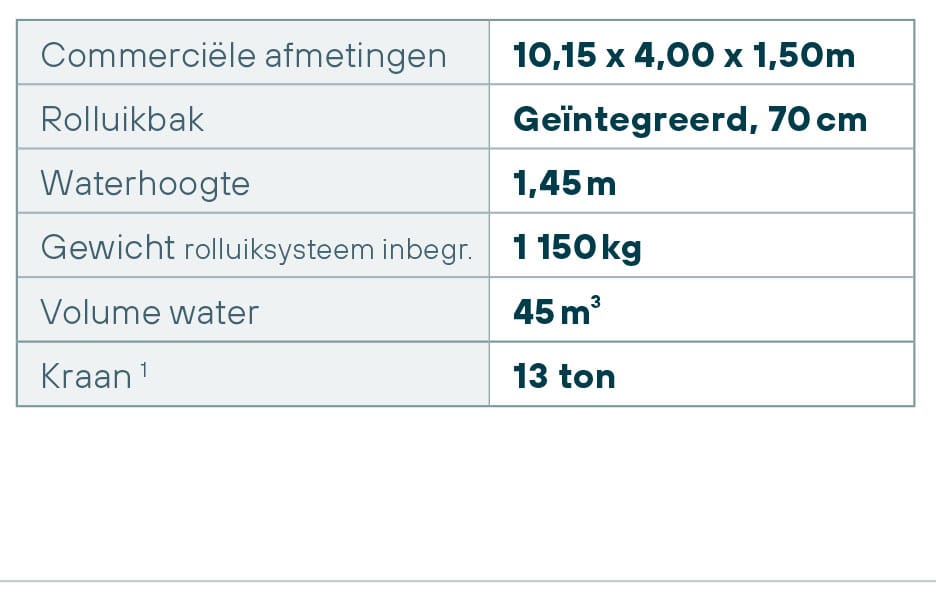 Het bad heeft een automatisch rolluik dat op het water drijft boven een veiligheidsrand, zoals trouwens bij alle LPW Pools zwembaden die met een Covrex® rolluik zijn uitgerust.