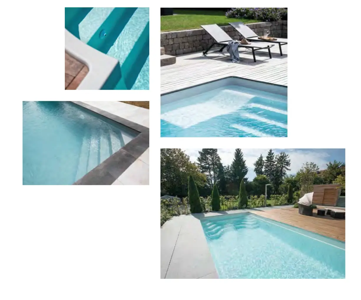 Ondanks dat de baden vooraf gebouwd worden, zijn er veel mogelijkheden om het bad uniek en persoonlijk te maken. Zoals verschillende soorten en kleuren folie, verschillende inlooptrappen en lamellenafdekkingen.